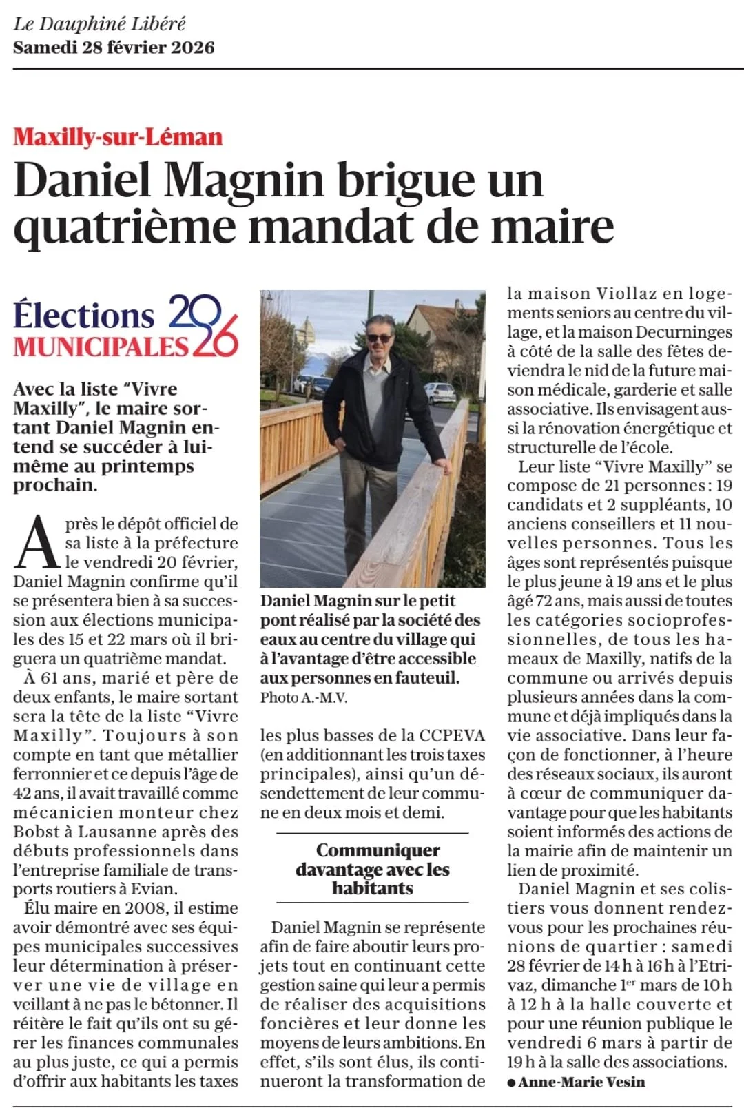 « Avec la liste “Vivre Maxilly”, le maire sortant Daniel Magnin entend se succéder à lui-même au printemps prochain. […]